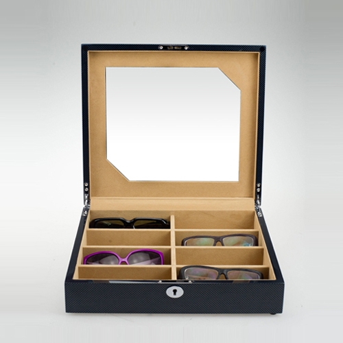 Designed for the upscale men’s and women’s glasses wearers, this cool carbon fiber glasses box gives a whole new meaning to old fashion charm! G011TC1 can store up to 8 pairs of reading glasses and sunglasses in eight large open area compartments that also can be used for keeping other valuable personal belongings. The final appearance of handcraft carbon fiber high polished lacquer exterior and the soft dark camel-brown velvet lined interior exhibits quality and traditional appeal.