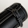 Zoser offers this popular and beautiful travel watch case for men. 3W-SP-B can store 3 watches with 3 independent watch pillows inside that make you insert or remove the watches more convenient and prevent them from touching each other. The appearance is hand made by black split leather with durable white stitching at the edges. The interior is lined with camel-brown soft-touch velvet that will protect timepieces from scratching very well. The closure of this travel watch case by two straps is with buckles which keep your watches secure all the time.